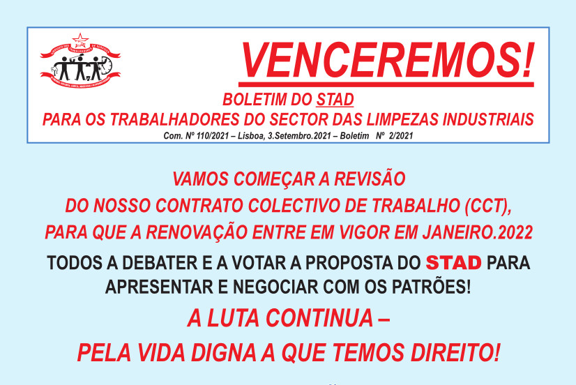 Vamos começar a revisão do nosso Contrato Colectivo de Trabalho (CCT), para que a renovação entre em vigor em Janeiro de 2022.