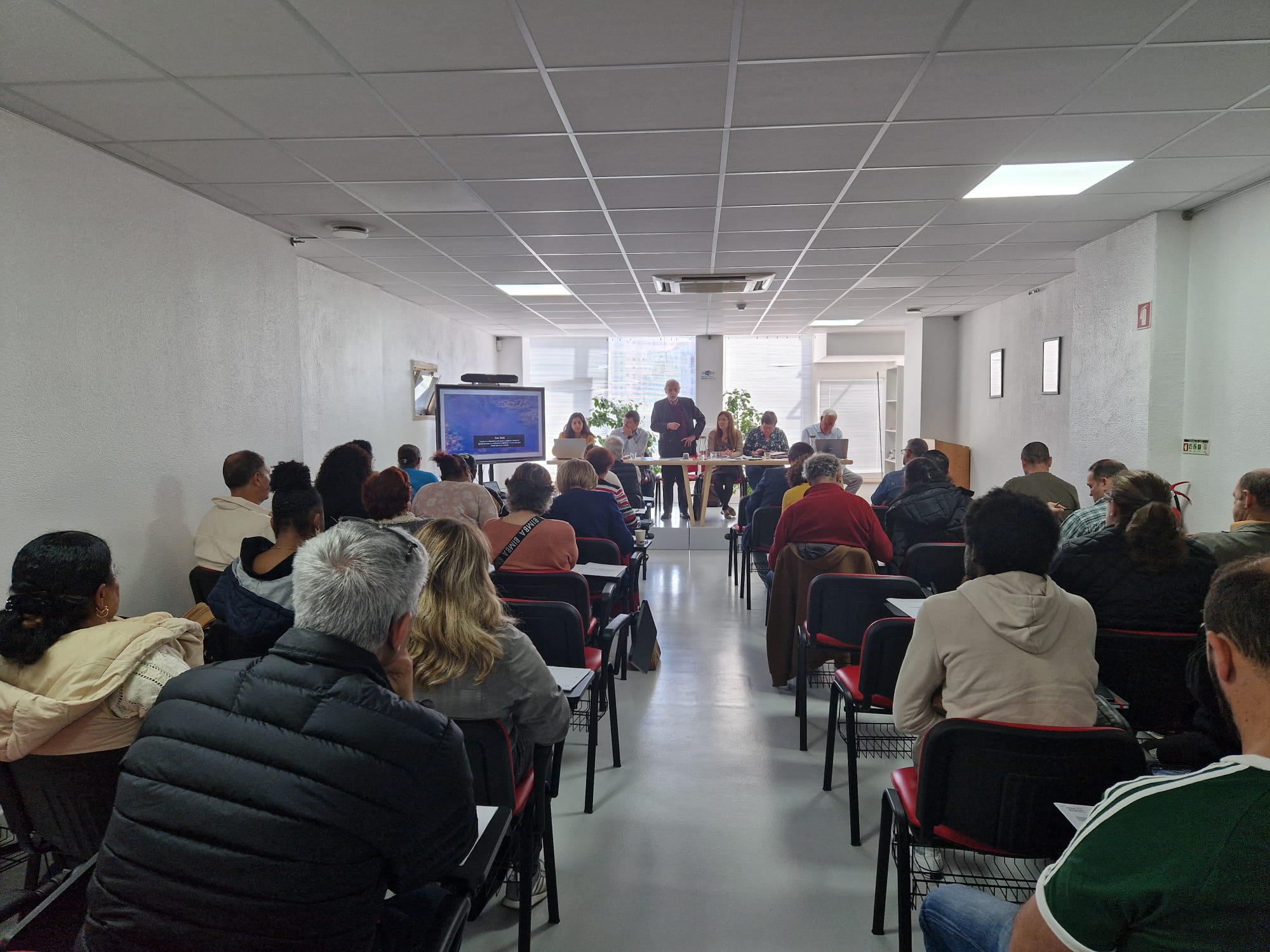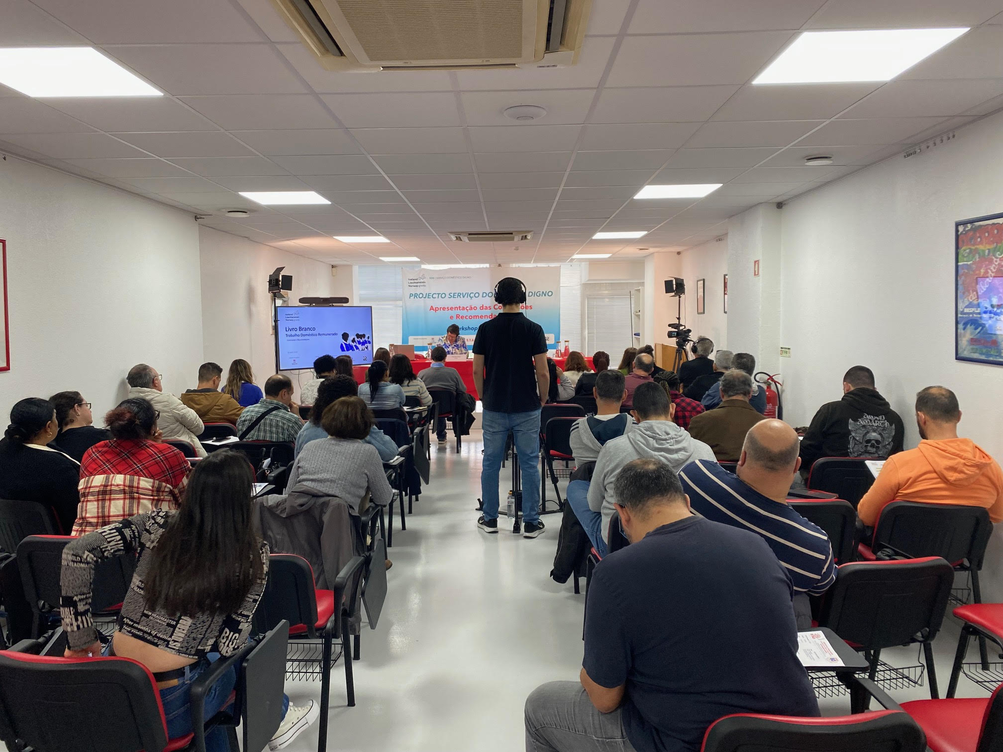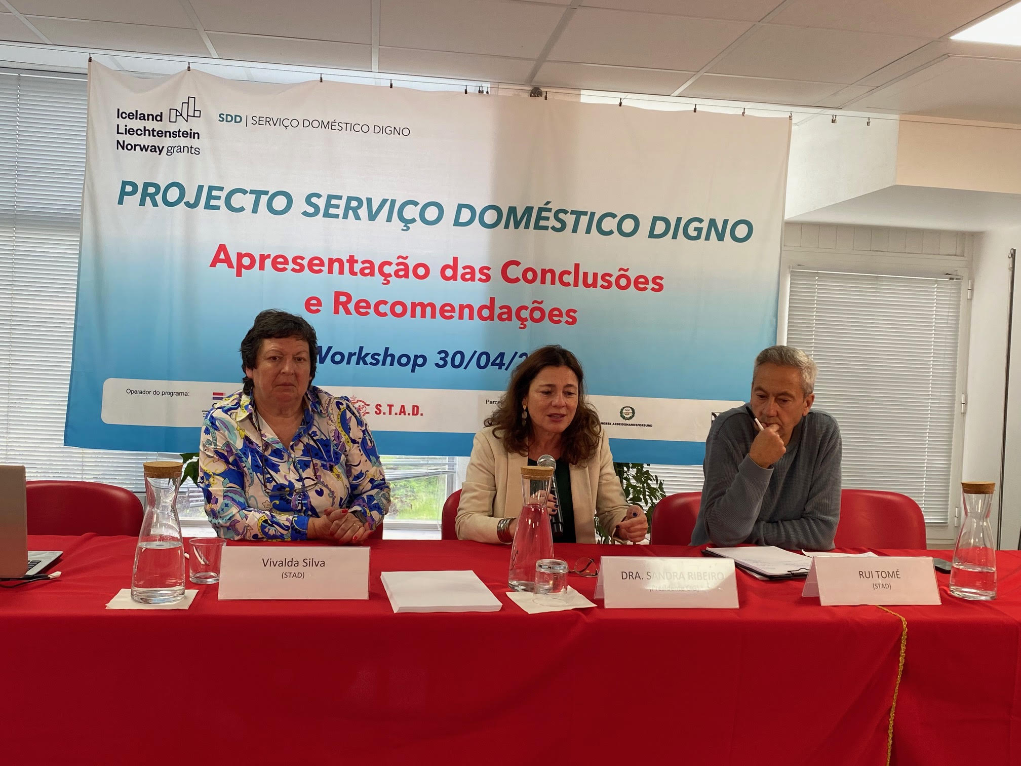 Assistimos às intervenções de Albertina Jordão, em representação da Organização Internacional do Trabalho (OIT); Alessandra Gianessi, da UNI Europa; Trine Wiig, NAF da Noruega, Sindicato parceiro do Projecto; Paloma Vasquez, CCOO Espanha; Catarina Salgueiro Maia da OGBL, Confederação Sindical do Luxemburgo e a anfitriã da Conferência, Vivalda Silva em representação do STAD enquanto promotor do Projecto.