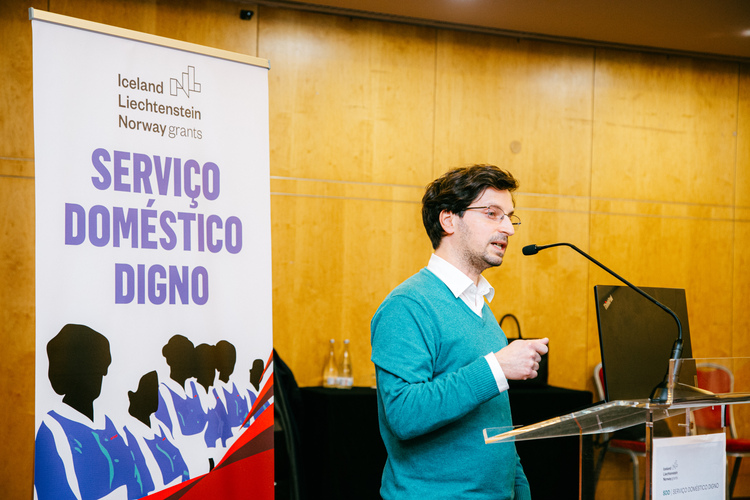 No primeiro painel da Conferência sobre o Serviço Doméstico Digno (SDD) realizada a 19 de Março, Amílcar Ramos (Economista) e Filipa Seiceira (Socióloga), da equipa técnica, apresentaram respectivamente, a caracterização económica e social do sector em função dos estudos efectuados no âmbito do projecto.